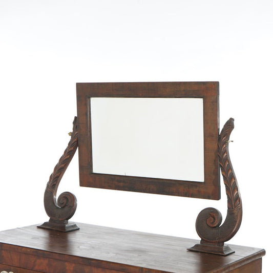 Antique American Empire Carved Mahogany Dressing Table with Mirror C1840