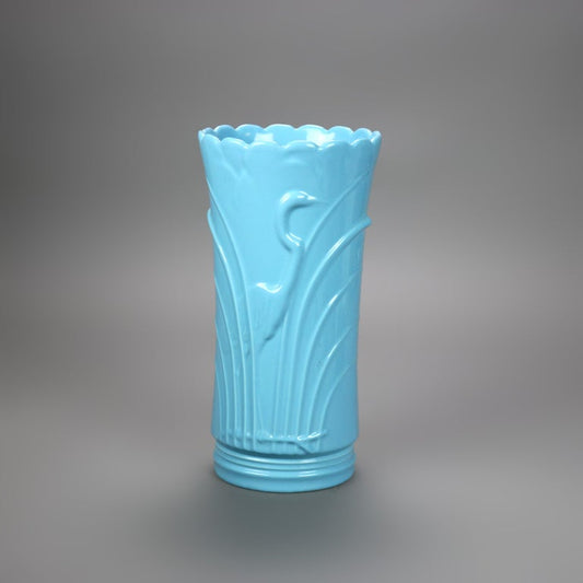 Abingdon Art Pottery Blue Umbrella Stand with Embossed Marsh Scene & Stork C1940