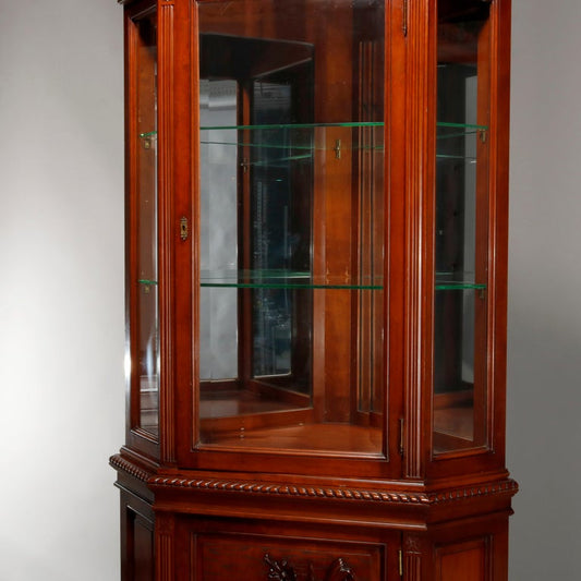 Antique Aesthetic Movement Carved Cherry Faceted & Mirrored Corner Cabinet c1890