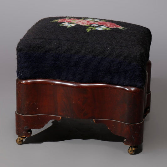 American Empire Mahogany & Floral Needlepoint Foot Stool C1880