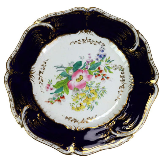 12 Antique English Cobalt Blue & Gilt Porcelain Plates C1900