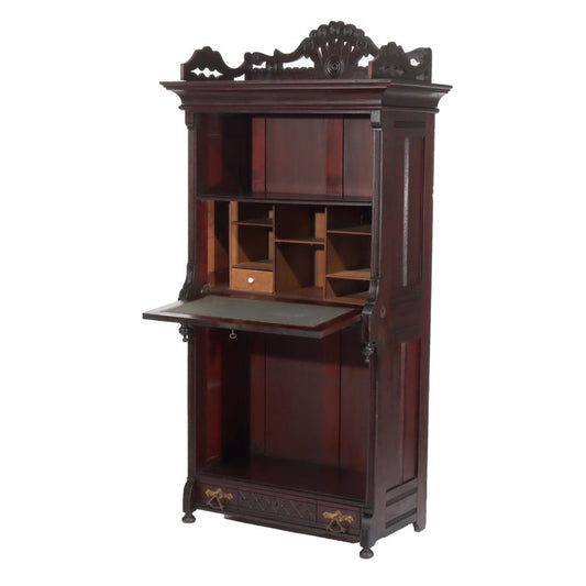 Aesthetic Movement Spoon Carved Ebonized Mahogany Secretary C1890