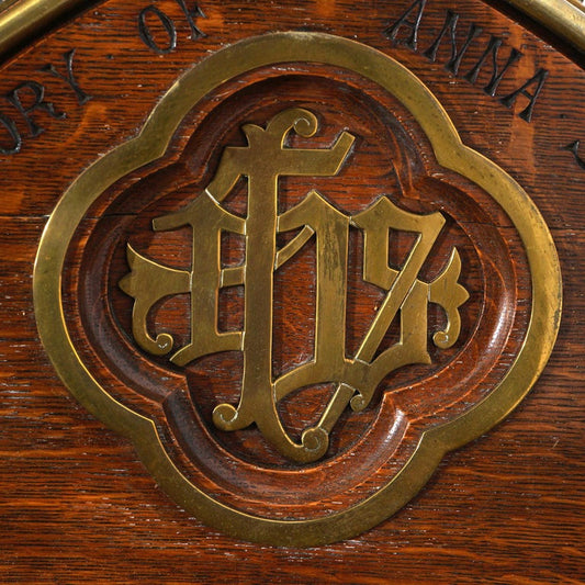 Antique Gothic Oak & Brass Communion Shelf 19thC