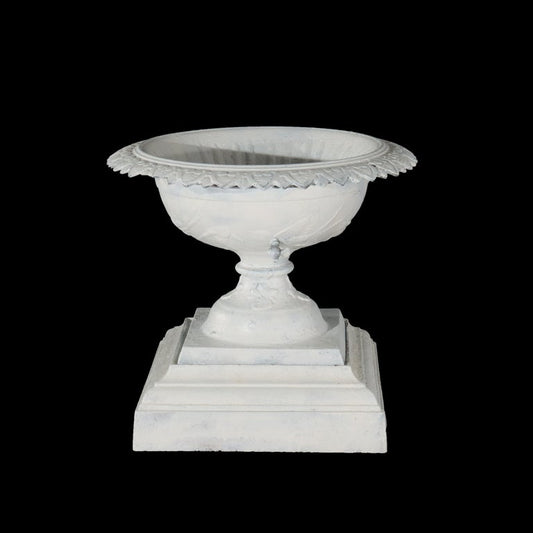 Antique Grecian Style Cast Iron Garden Urn, White Painted, C1900