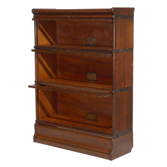 Antique Globe Wernicke Arts & Crafts Oak Three Stack Barrister Bookcase C1920