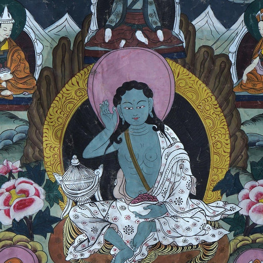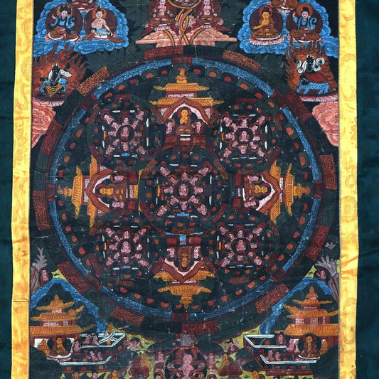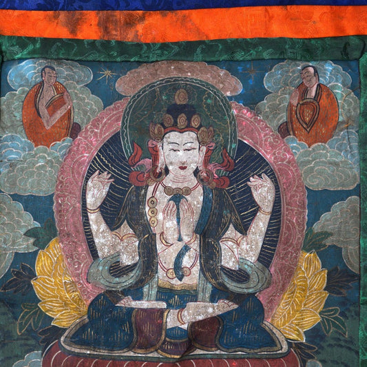 Antique Tibetan Hand Painted Silk and Canvas Thangka with Figures C1920