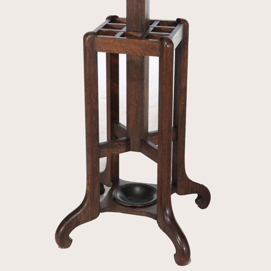 Antique Stickley School Arts & Crafts Oak Hat Rack & Umbrella Stand C1920