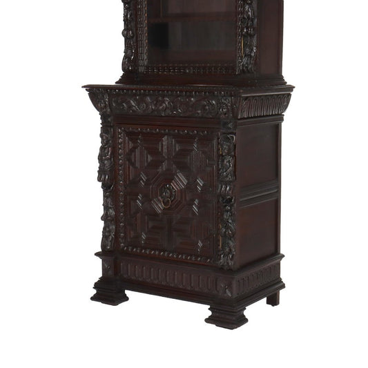 Antique Two Piece Italian Baroque Figural Carved Oak Court Cupboard 18thC