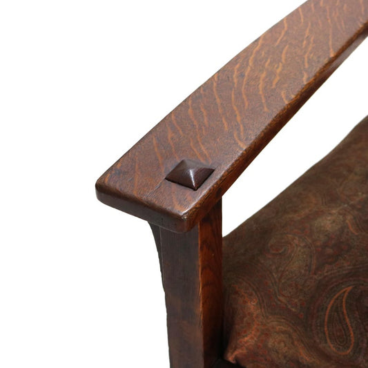 Antique Stickley Arts and Crafts Mission Oak Slat Back Arm Chair C1910