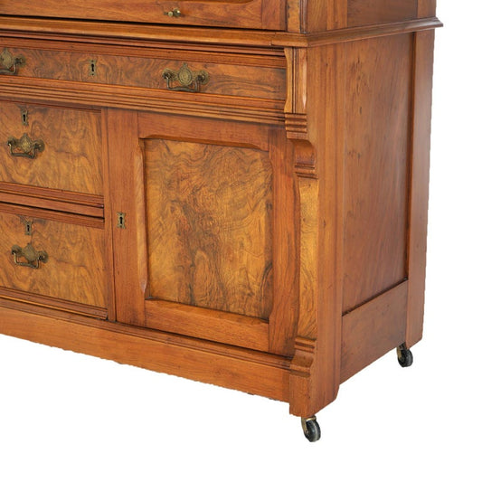 Antique Victorian Walnut & Burl Barrel Roll Top Secretary Bookcase & Desk C1890