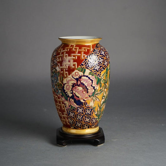 Chinese Porcelain Vase with Bamboo & Flowers on Hardwood Stand 20thC