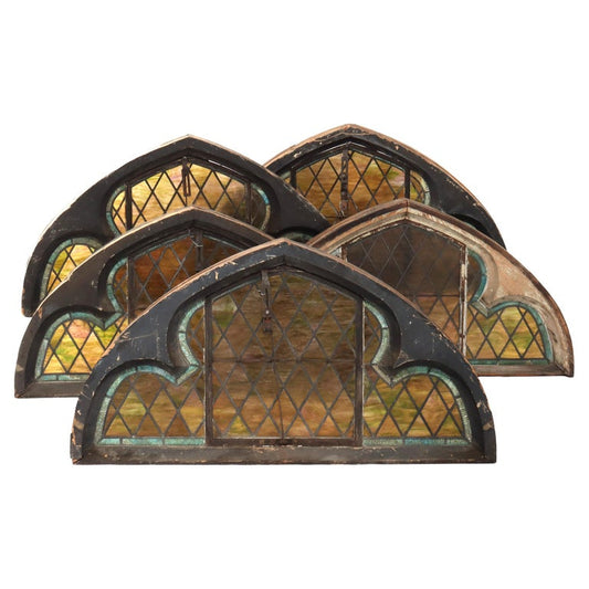 Five Tiffany Studios Gothic Revival, Stained Glass Transom Windows, Phila, C1900