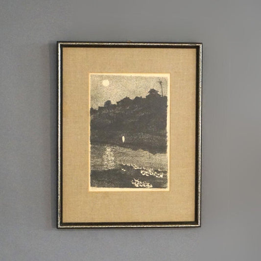 Mid Century Modern Impressionist Litho Night Scene Pencil Titled & Signed