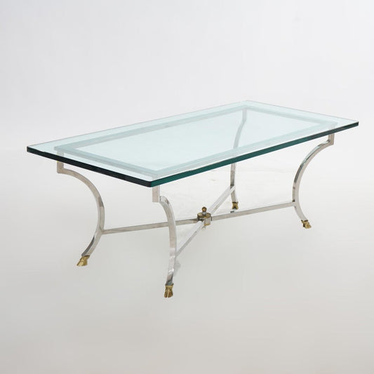 Mid Century Modern Hollywood Regency Chrome, Brass & Glass Coffee Table C1960