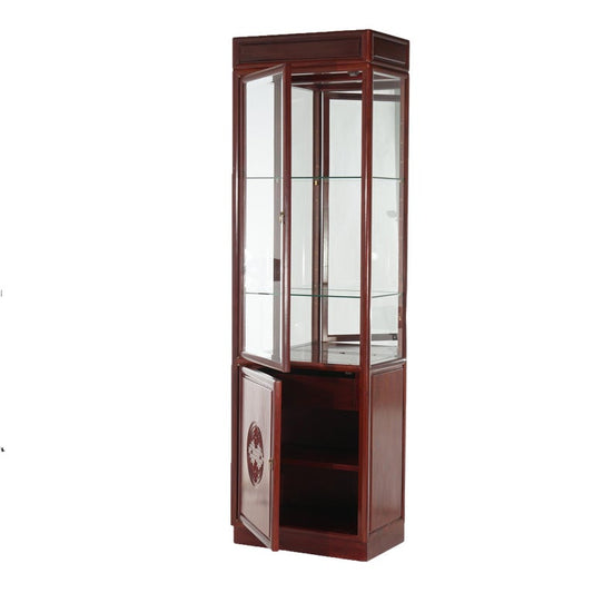 Vintage Chinese Mahogany Display Case with Lower Blind Door Cabinet C1960