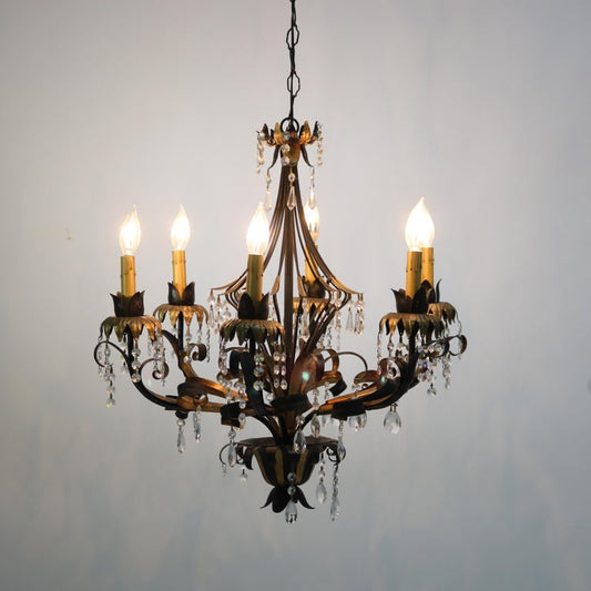 Vintage Ebonized & Gold Gilt Six-Light Foliate Form Crystal Chandelier C1940