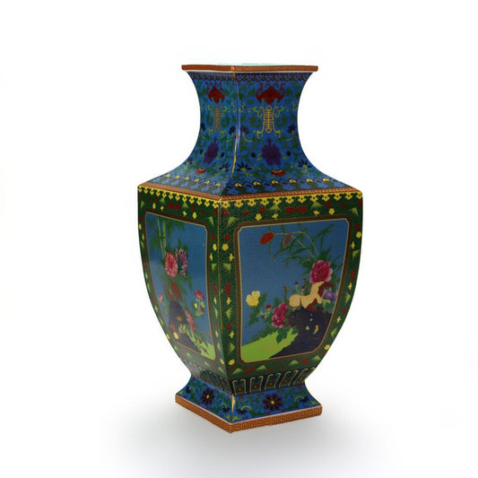 Vintage Chinese Enameled Porcelain Garden Vase with Floral Pattern Signed 20thC