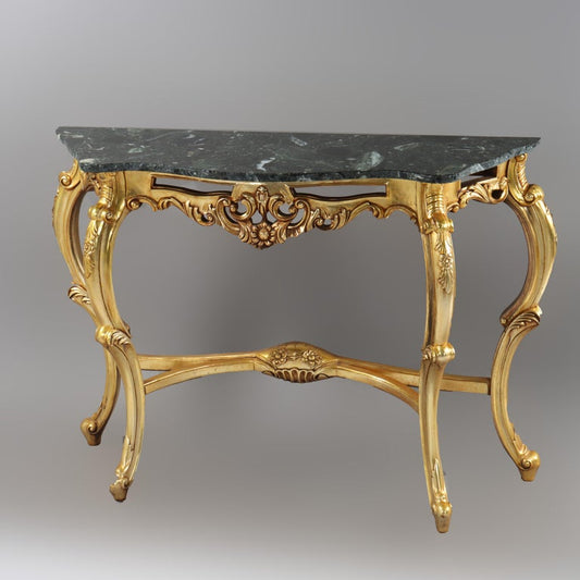 Vintage French Louis XIV Style Carved Gilt Wood Marble Top Console Table 20thC