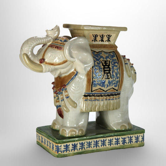 Vintage Chinese Majolica Figural Elephant Pottery Garden Seat Mid 20thC