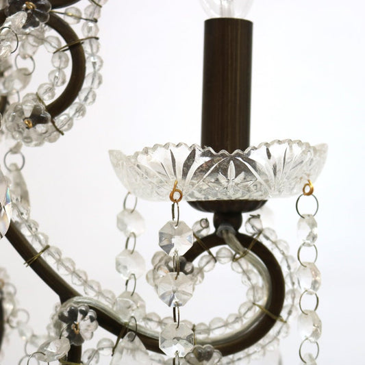 Vintage Crystal Bead and Cut Crystal Three Light Chandelier C1940