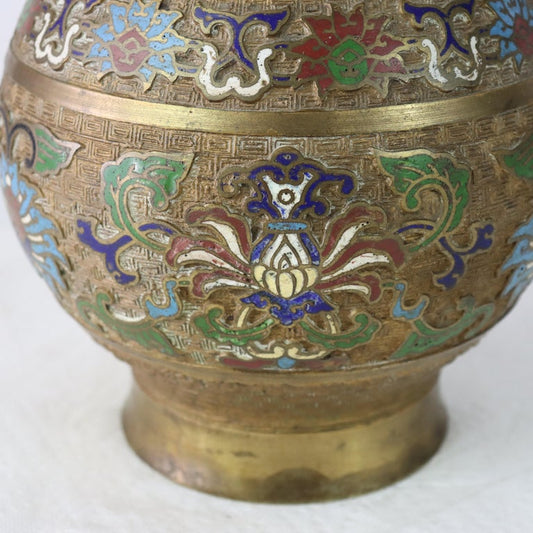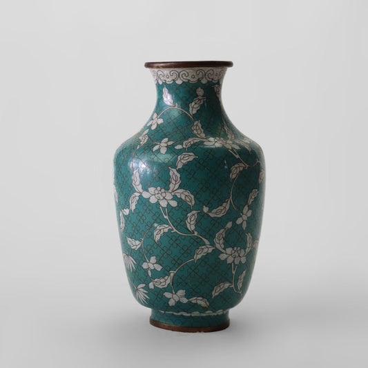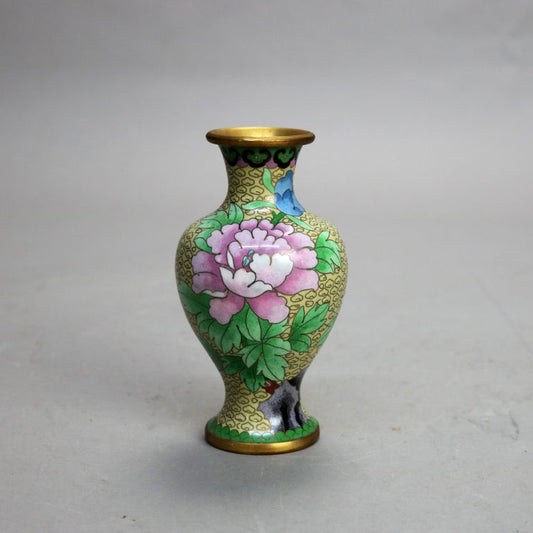 Antique Chinese Cloisonne Enameled Vase With Peonies 20thC