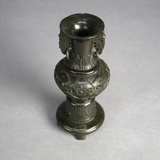 Antique Chinese Cast Bronze Floral Decorated Vase with Branch Form Handles 18thC
