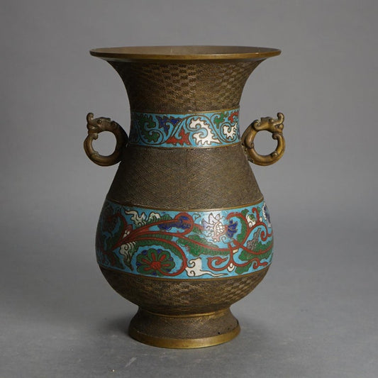 Antique Chinese Bronze Cloisonne Enameled Double Handled Vase C1910