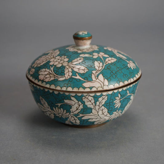 Antique Chinese Bronze Cloisonne Floral Enameled & Footed Cigar Box C1920