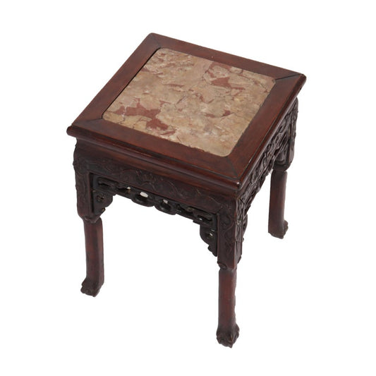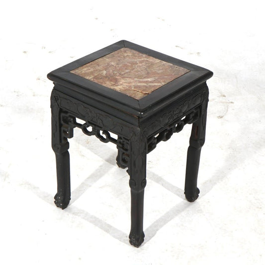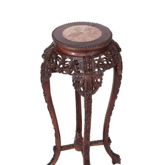 Antique Chinese Carved Hardwood Marble Top Plant Stand, Circa 1920
