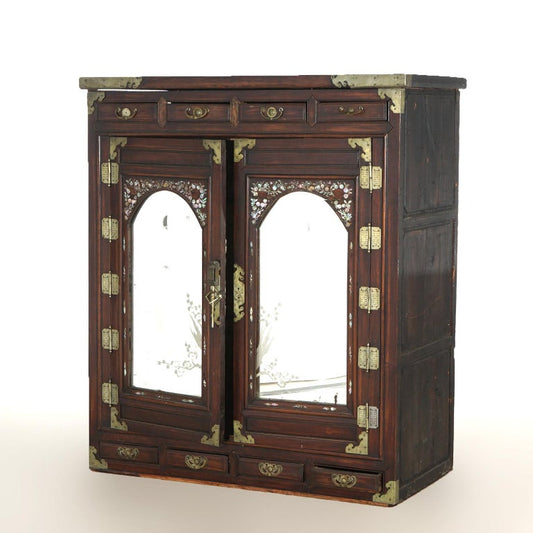 Antique Chinese Hardwood Wedding Cabinet with Mother of Pearl Inlay 19thC