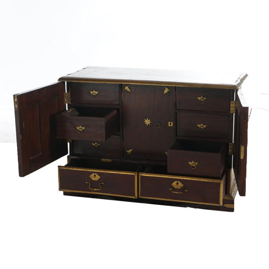 Antique Chinese Mahogany Spice Cabinet with Brass Mounts 19th C