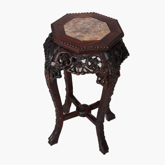 Antique Chinese Floral Carved Hardwood Stand With Rouge Marble Top c1920