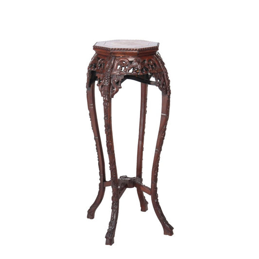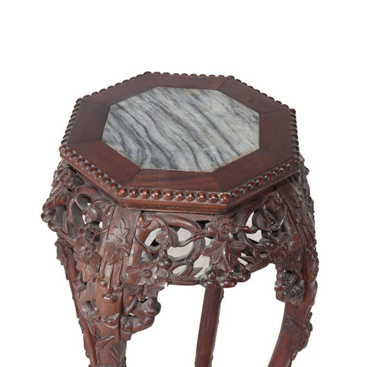 Antique Chinese Floral Carved Hardwood Marble Top Stand C1910