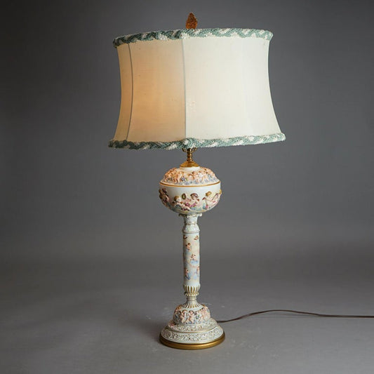 Antique Classical Italian Embossed Porcelain Cherub Table Lamp, c1920