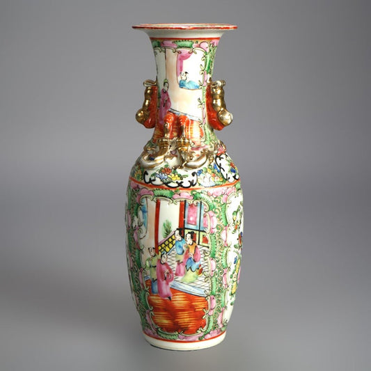 Antique Chinese Rose Medallion Porcelain Double Handled Vase c1900