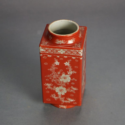 Antique Chinese Porcelain Vase, Orange with Floral Design C1920