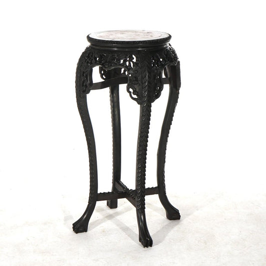 Antique Chinese Tall Carved Hardwood & Rouge Marble Table C1910