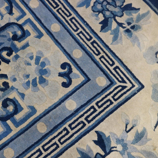 Antique Chinese Peking School Blue & White Oriental Wool Carpet C1930