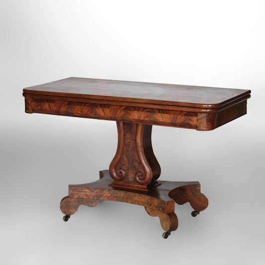Antique Classical American Empire Flame Mahogany Card Table C1840
