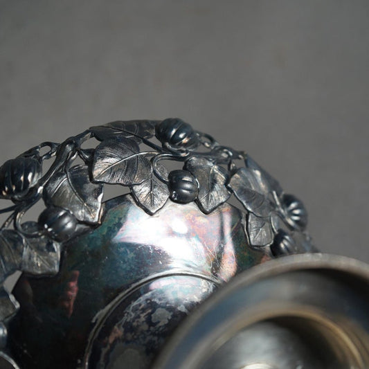 Antique Victorian Reticulated Silver Plate Grape & Leaf Compote, circa 1900