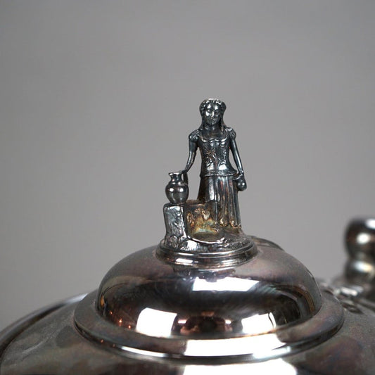 Two Piece Antique Footed & Figural Silver Plated Tea Set C1890