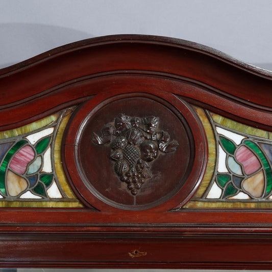 Antique Arts & Crafts Mahogany Mirrored Back Bar with Leaded Glass Cornucopia