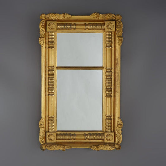 Antique American Classical Empire Balustrade Form Giltwood Wall Mirror C1840