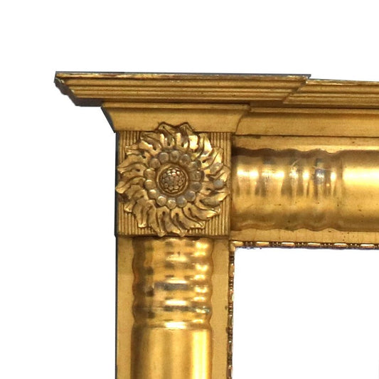 Antique American Empire Column and Rosette Giltwood Wall Mirror, 19th Century