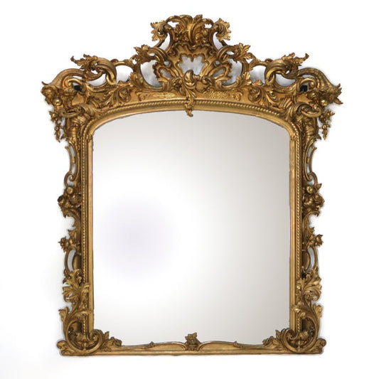 Antique Continental Scroll and Foliate Giltwood Framed Wall Mirror, circa 1900