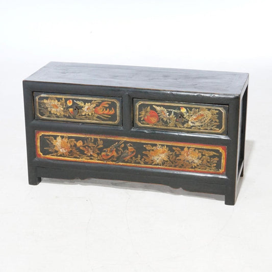 Chinese Polychrome Hand Painted Low Chest with Garden Birds & Fruit 20th C