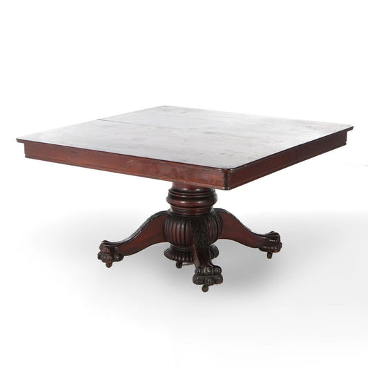 Antique American Empire Carved Mahogany Banquet Table & Six Leaves c1880