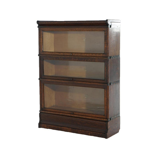 • Antique Macey Arts & Crafts Three-Stack Oak Ogee Base Barrister Bookcase C1920