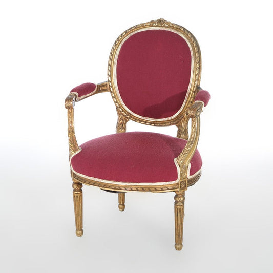 • Pair of Antique French Louis XVI Style Giltwood Armchairs C1920