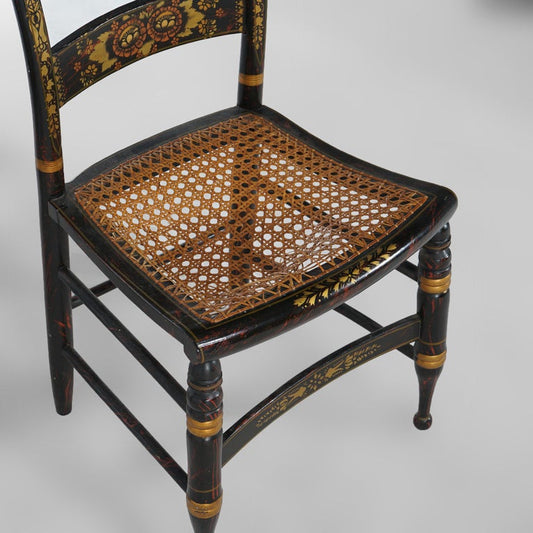 • Four Antique Stenciled Hitchcock Style Side Chairs Signed Walter Smith, 19th C
